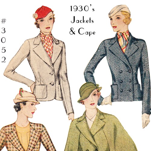 Vintage Sewing Pattern Ladies 1930s Jacket And Cape 3052 Etsy